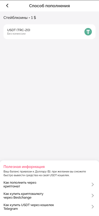 To top up the balance, a USDT wallet address is assigned to the Employee, which remains unchanged.