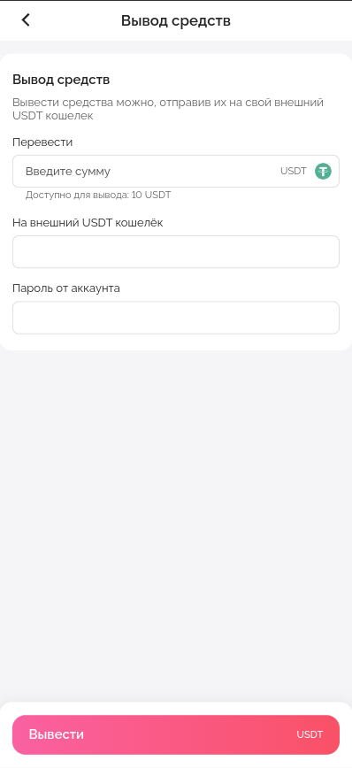 Enter the withdrawal amount in USDT (1 USDT = 1$).
